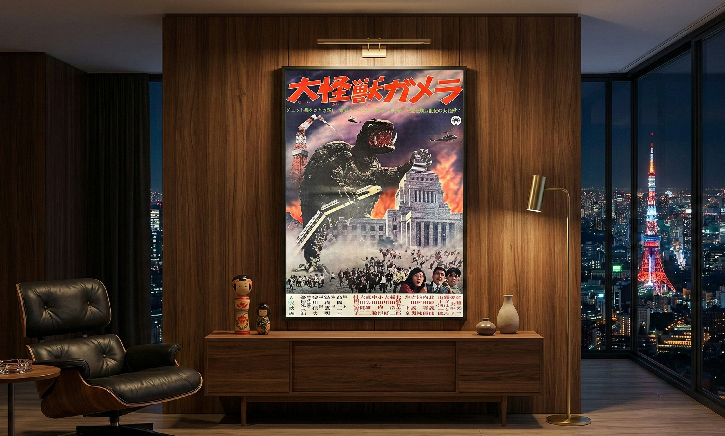 This is a Japanese B0 Poster (40.6" x 57.3") for the 1965 Japanese kaiju film, Gamera, the Giant Monster (大怪獣ガメラ, Daikaijū Gamera; lit. 'Giant Monster Gamera'). Gamera is a 1965 Japanese kaiju film directed by Noriaki Yuasa, with special effects by Yonesaburo Tsukiji.[2] Produced and distributed by Daiei Film, it is the first film in the Gamera franchise and the Shōwa era. The film stars Eiji Funakoshi, Harumi Kiritachi, and Junichiro Yamashita. In the film, authorities deal with the attacks of Gamera, a giant prehistoric turtle unleashed in the Arctic by an atomic bomb.