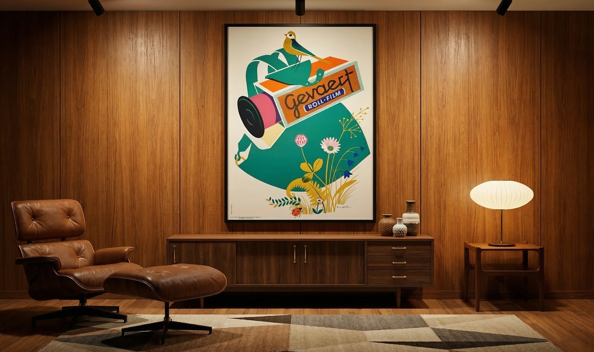 This is a 1948 Swiss poster (35.5"x 47") advertising "Gevaert Roll-Film" by the influential Swiss graphic designer Donald Brun.