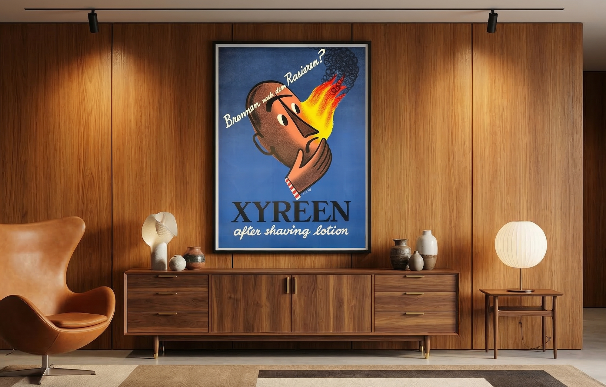 This is a rare Circa 1935 poster (37"x 48") advertising Cyrene after shave lotion by H.A. Rey. H. A. Rey (born Hans Augusto Reyersbach; September 16, 1898 – August 26, 1977) was a German-born American illustrator and author, known best for the series of children's picture books that he and his wife Margret Rey created about Curious George.