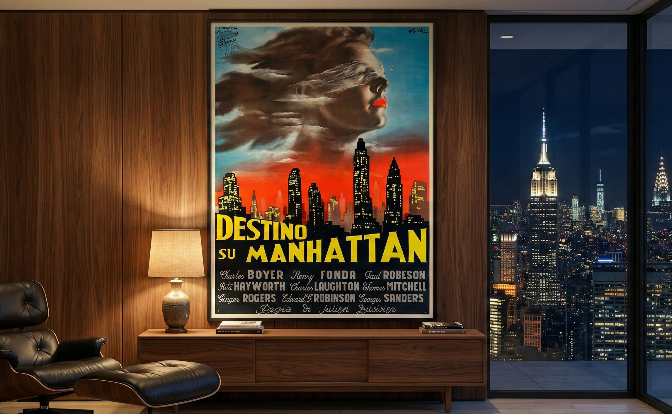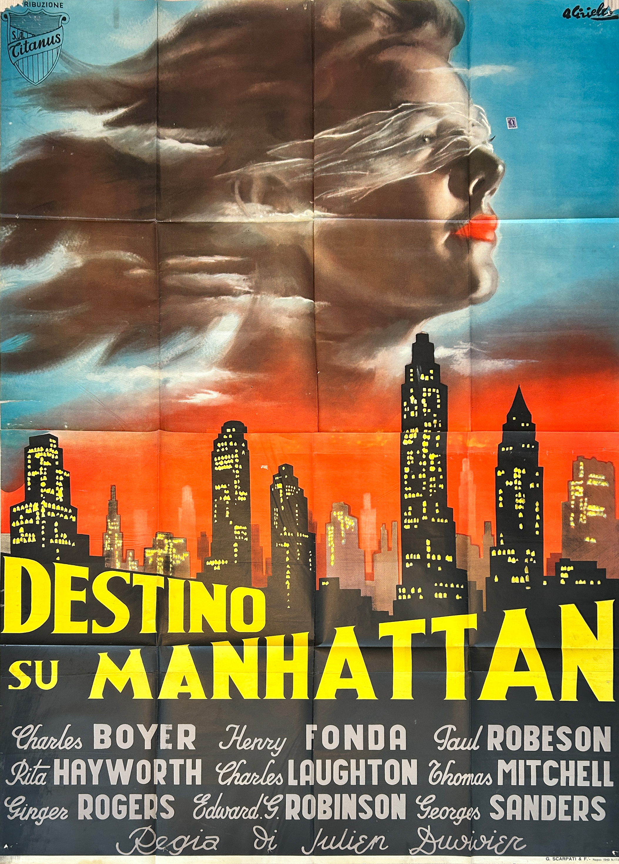 This is an Italian 4 Fogli poster (48" x 72") for the 1942 American film "Tales of Manhattan" (titled Destinoor Destino su Manhattan in Italy).