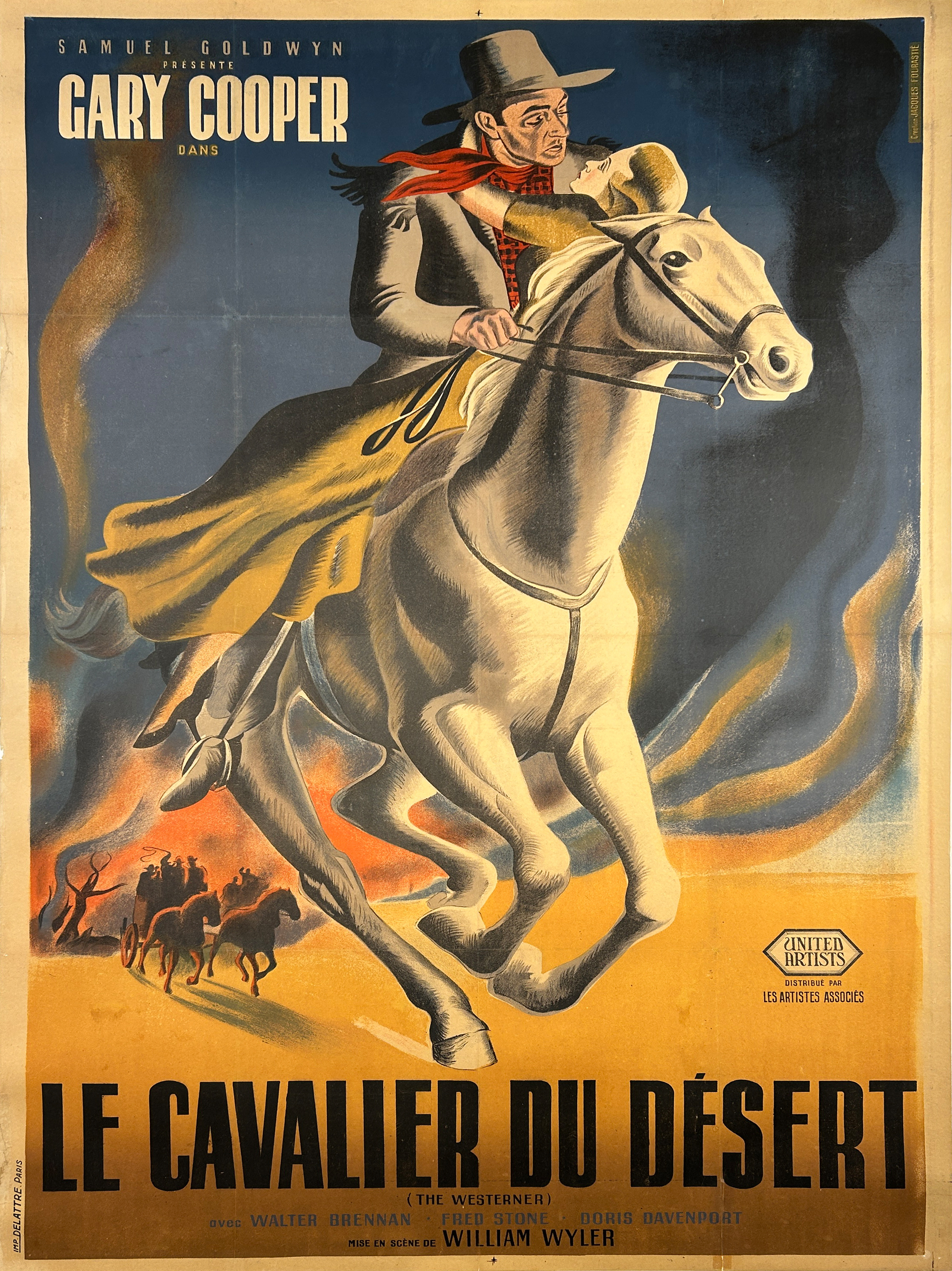 This is a French Grande (39.5"x 58") poster for the 1940 American Western film The Westerner, titled Le Cavalier du Désert in France.